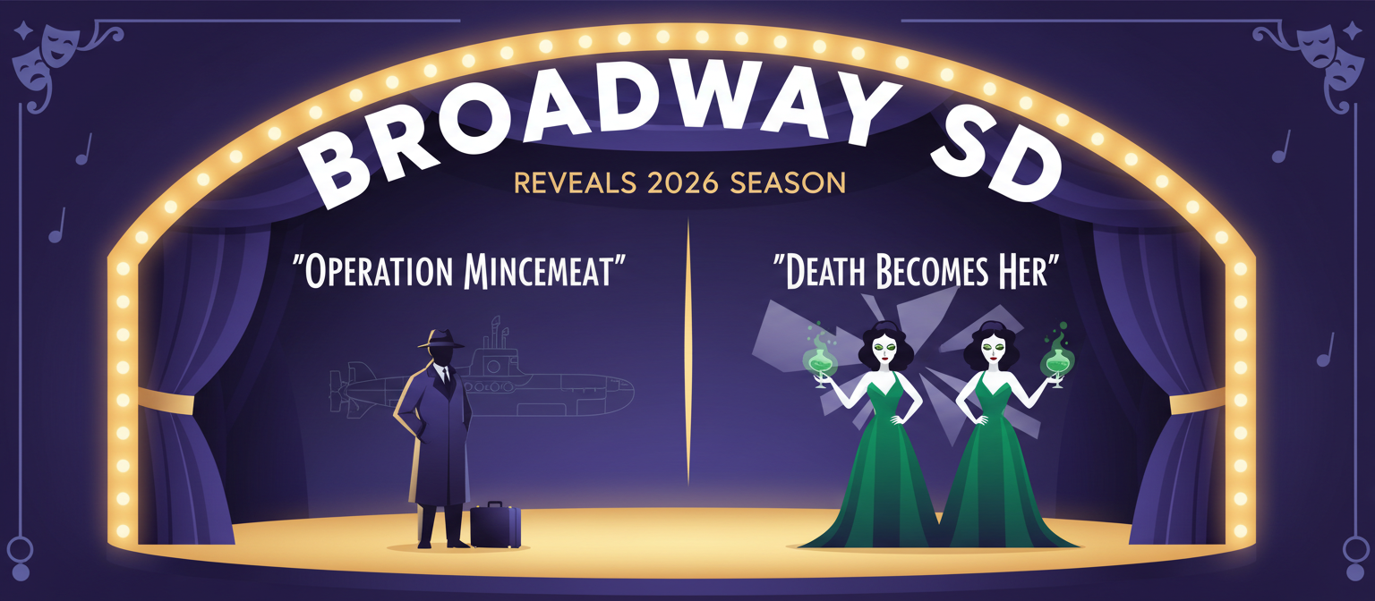 Broadway San Diego’s newly announced 2026 season will bring seven current Broadway shows to local audiences, including the hit musical ‘Operation Mincemeat’ and the stage adaptation of ‘Death Becomes Her.’