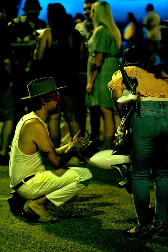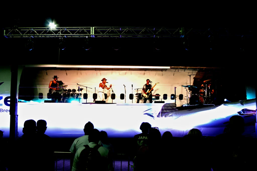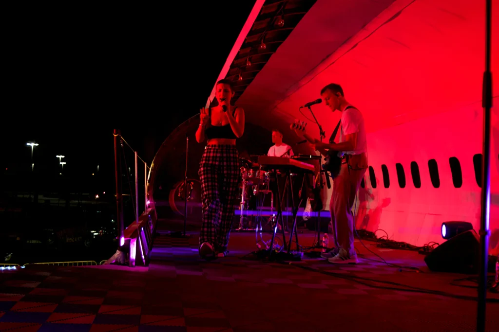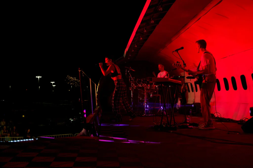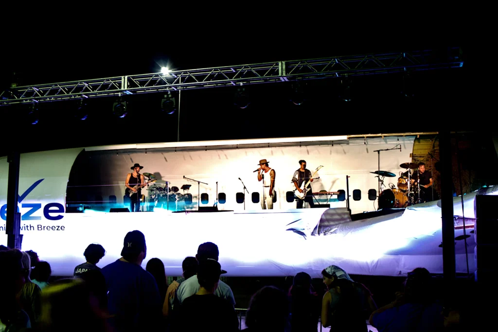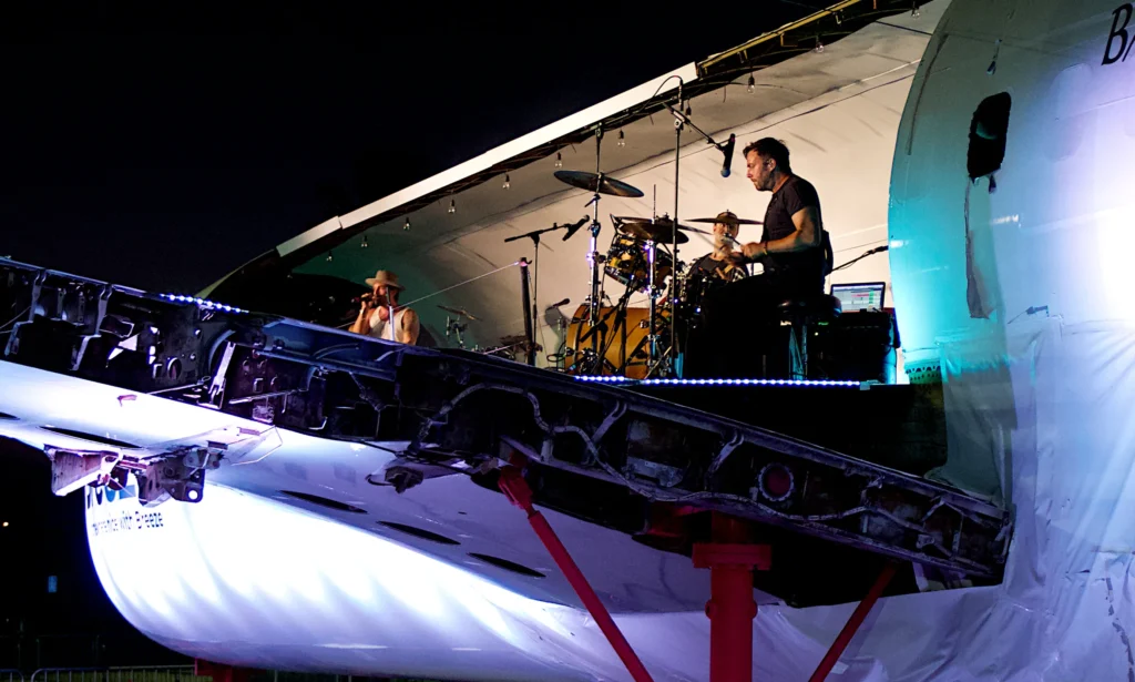It’s a bird. Is it a plane? Nope. It’s the World Famous 737 Plane Stage, an actual sound stage built from the airframe of a once serviceable Boeing 737 airliner. You don’t see something like this every day, and probably won’t anywhere else. Before the music even started, people were already gathered around it, pointing, taking photos, and trying to figure out how a concert on an airplane was going to work.